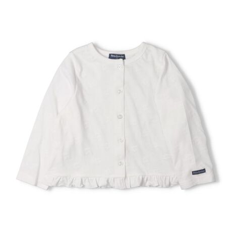 汗を吸い取り、すばやく乾燥する吸水速乾。吸湿&吸熱のW効果で涼感を与える接触冷感加工。更にUVカットで日焼け対策や冷房対策など、夏のお出かけにオススメ!花柄部分が少し立体になった花柄ジャガード素材のカーディガン。裾フリルが女の子らしい!シンプルでどんなアイテムとも合わせやすい!【アイテム】トップス シンプル ガーリー フェミニン カジュアル お洒落 オシャレ かわいい 可愛い 普段着 デイリーウェア お出かけ着 お外着 お外遊び着 子ども こども 女児 女の子 ガールズ キッズ ベビーサイズ トドラーサイズ 幼稚園 保育園 小学校 通園 通学 小学生 2026年春夏物新作 丸高衣料 ロングスリーブ 長袖 ホワイト 白色 クリーム イエロー 黄色 ムージョンジョン フラワー