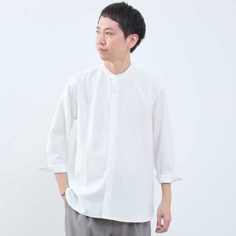 さらっと羽織るだけで今季らしい表情が完成する、大人のバンドカラーシャツ。