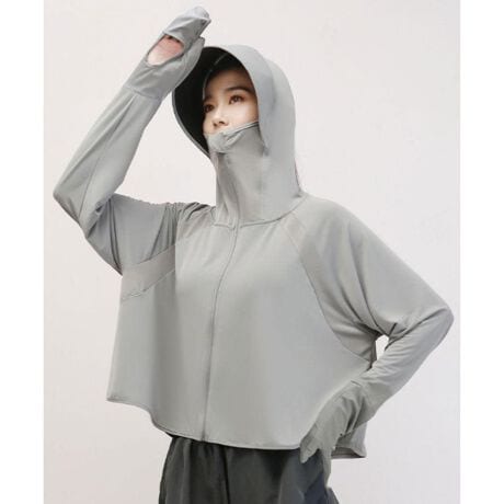 -顔までしっかりカバーできるUVカットパーカー。紫外線対策に最適な一枚。