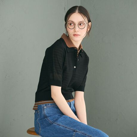 メッシュで軽やかに仕上げた、旬なスタイルに欠かせないポロニット。