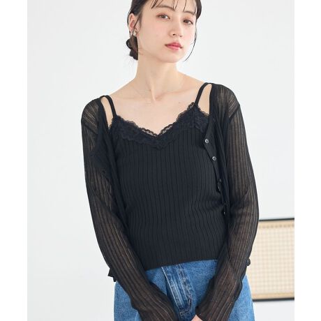 繊細レースで魅せる大人可愛いリブキャミソール華やかなレースデザインが胸元を美しく彩る、女性らしさを引き立てるキャミソールです。伸縮性のあるリブ素材が体にやさしくフィットし、すっきりとしたシルエットを演出します。インナーとしてはもちろん、シャツやカーディガンの中からレースをのぞかせるレイヤードスタイルもおすすめです。肩紐はアジャスター付きで長さ調整ができるため、自分に合ったフィット感で着用いただけます。デイリー使いしやすく、季節を問わず活躍する万能アイテムです。シンプルながらも上品な印象を与え、コーディネートにさりげない華やかさをプラスしてくれます。透け感[ややあり]