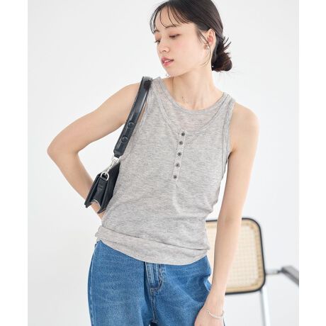 重ねるだけでこなれる大人可愛いレイヤードタンクシアー素材とフライス素材を重ねたデザインが、簡単にトレンド感のある着こなしを叶えてくれます。透け感のある軽やかな表情が、カジュアルスタイルに程よい抜け感をプラス。柔らかなフライス生地は肌あたりがよく、長時間でも快適に過ごせるのが魅力です。ヘンリーネックのさりげないボタンディテールが、シンプルな中にもアクセントを添えます。セットアイテムなのでセパレートしても使えるので着回しが広がります。コーデに悩まず、1枚でバランスよく決まるのも嬉しいポイントです。デニムやスカートと合わせるだけで、こなれた大人可愛いスタイルが完成します。透け感[ややあり]