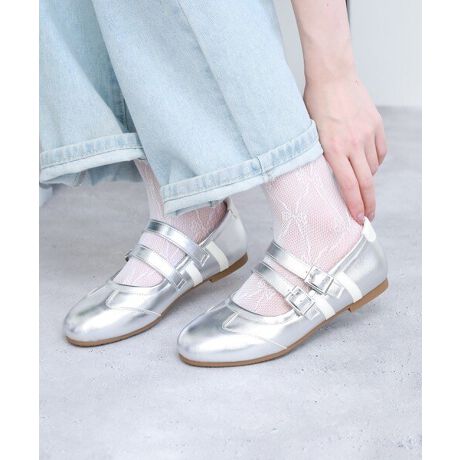 愛らしいラウンドトゥと2本のストラップが足元にアクセントを添え、程よい存在感を演出します。