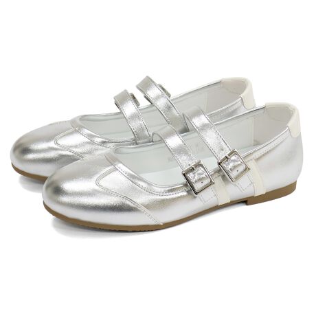 愛らしいラウンドトゥと2本のストラップが足元にアクセントを添え、程よい存在感を演出します。