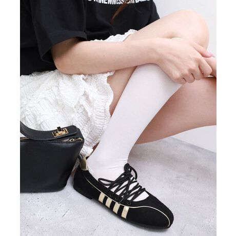 柔らかなレースアップ仕様とアクセントとなるラインディテールが、スポーティさとフェミニンの絶妙なバランスを演出しています。