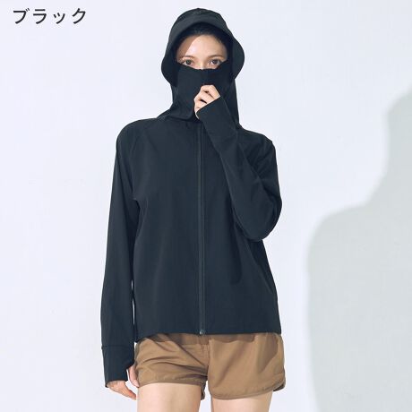 顔もすっぽり隠れるタイプのハイネックでUV対策。