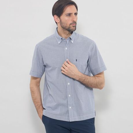 無地感覚でご着用頂ける1mmピッチのマイクロストライプ柄とマイクロギンガム柄です。シアサッカー素材の為ナチュラルな皺感があり、アイロンを使用せず、洗いざらしでも雰囲気良くご着用頂けます。ポリエステルを交編することでより薄く、軽くサラッとした風合いに生地に仕上がっています。