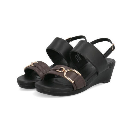 大ぶりのゴールドのビット金具が、足元をエレガントに引き立てるウエッジサンダル。