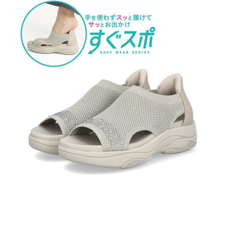 かがまず手を使わず履ける「すぐスポ」シリーズのサンダル。