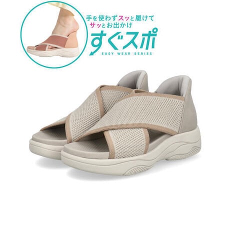 かがまず手を使わず履ける「すぐスポ」シリーズのサンダル。