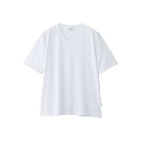 浅めのVネックデザインのTシャツ。後ろ身頃の裾はソフトラウンドになっており前後差を付けています。
