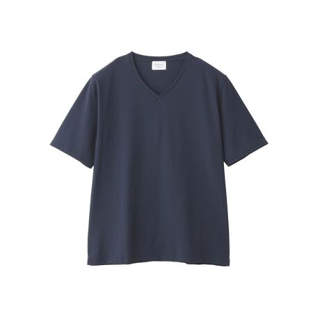 浅めのVネックデザインのTシャツ。後ろ身頃の裾はソフトラウンドになっており前後差を付けています。