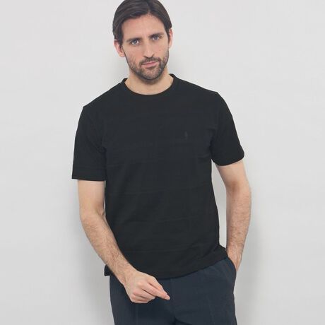 特徴的な生地を生かすオーセンティックなデザインのTシャツです。左胸にダンディマンの刺しゅうが入ります。1枚でご着用いただいたり、ジャケット、アウターのインナーにも最適なTシャツです。脇下にデオドラントテープを施すことで、消臭効果も付与しています。