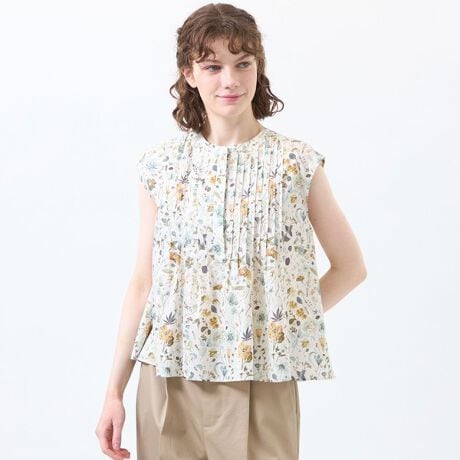 リバティプリントピンタックフレアブラウス