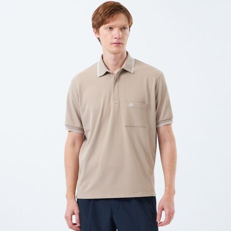 衿先と袖口に配色ラインを配したポロシャツです。衿のラインがスポーティさとクリーンな印象を演出し、胸ポケットにはラインカラーと連動したMPロゴ刺しゅうが入っています。