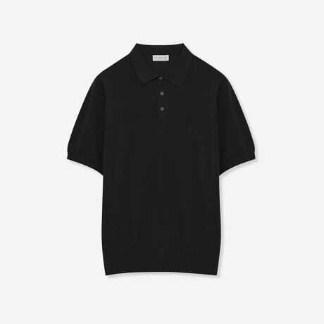 レギュラーフィットの半袖ニットポロです。テーラードの考えを取り入れた立体的な設計で、シルエットに上品さと動きやすさを両立させています。フロントは三つボタン仕様で、左胸にはダンディマンの刺繍が入ります。