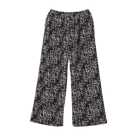 リラックス感と華やぎを両立する柄プリーツパンツ