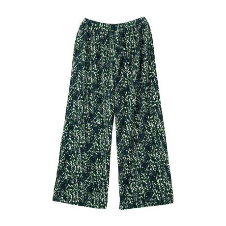 リラックス感と華やぎを両立する柄プリーツパンツ