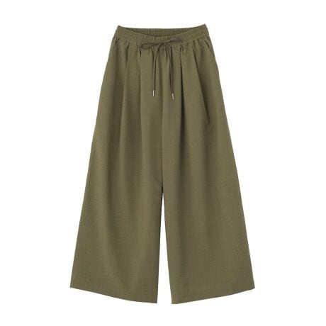さらりとしたドライタッチ素材で、暑い季節も心地よく過ごせる一本です。吸水速乾機能により汗をかいてもべたつきにくく、接触冷感でひんやりとした肌触りを感じられます。ウエストはゴム仕様でリラックスしたはき心地ながら、フロントタックがきちんと感を演出してくれるのも魅力です。ゆとりのあるワイドシルエットは体のラインを拾いにくく、自然にスタイルアップを叶えてくれます。イージーケアでお手入れも簡単なため、日常使いからお出かけまで幅広く活躍します。快適さと上品さを兼ね備えた、大人のデイリースタイルにおすすめのアイテムです。