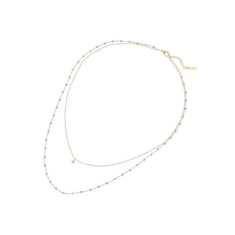 繊細なチェーンに小さなカラーパーツをあしらった2連デザインが、首元に上品な華やかさを添えてくれるネックレスです。主張しすぎないプチトップがアクセントとなり、シンプルながらも洗練された印象を演出します。軽やかな着け心地でデイリーに取り入れやすく、カジュアルからきれいめまで幅広いコーディネートに自然になじみます。ステンレス素材を使用しているため扱いやすく、気兼ねなく使えるのも嬉しいポイントです。さっと身に着けるだけで、コーデ全体をやさしく引き立ててくれます。