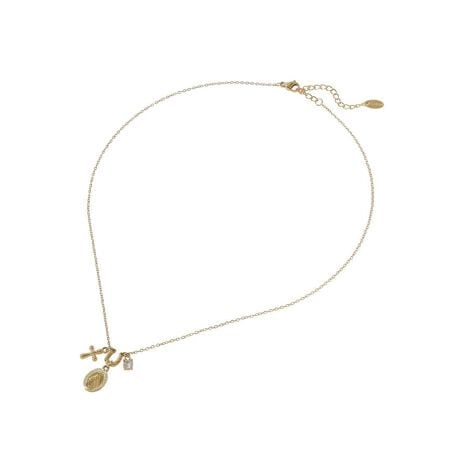 多彩なチャームが織りなすデザインが、控えめながらも印象的なアクセントを生むネックレスです。細身のチェーンと上品な輝きが、どんなコーディネートにも自然に溶け込みます。ステンレス素材を使用しているため、変色しにくくお手入れも簡単で、日常使いにぴったりです。軽量で負担が少なく、ストレスフリーな着け心地も嬉しいポイントです。首元に程よい存在感を与えつつ、上品なカジュアルスタイルを叶えてくれる万能なアイテムです。