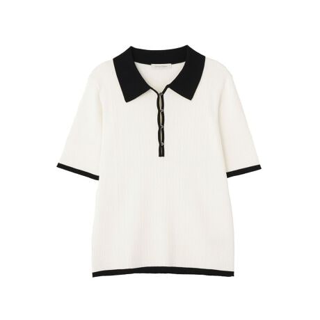 襟元や前立てに施された配色デザインが、シンプルな中にさりげないアクセントを添える一枚です。リブ編みの縦ラインがすっきりとした印象を与え、自然にスタイルアップを叶えてくれます。コンパクトなシルエットながらも程よいフィット感で、快適な着心地が続きます。ポロデザインがきちんと感を演出し、カジュアルになりすぎず上品に着こなせるのも魅力です。パンツやスカートとも相性が良く、通勤から休日まで幅広く活躍します。シンプルながらも洗練されたコーディネートが完成する一着です。
