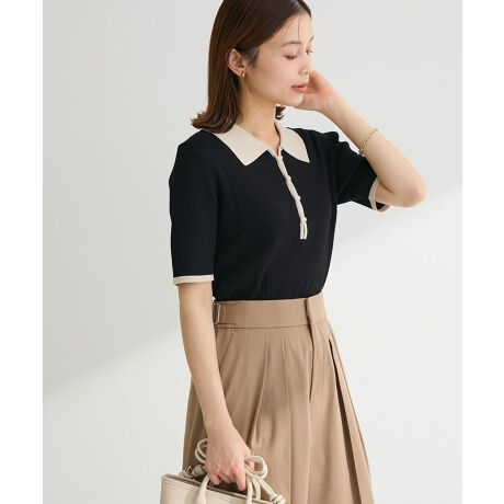 配色で魅せる、上品リブニットポロ襟元や前立てに施された配色デザインが、シンプルな中にさりげないアクセントを添える一枚です。リブ編みの縦ラインがすっきりとした印象を与え、自然にスタイルアップを叶えてくれます。コンパクトなシルエットながらも程よいフィット感で、快適な着心地が続きます。ポロデザインがきちんと感を演出し、カジュアルになりすぎず上品に着こなせるのも魅力です。パンツやスカートとも相性が良く、通勤から休日まで幅広く活躍します。シンプルながらも洗練されたコーディネートが完成する一着です。
