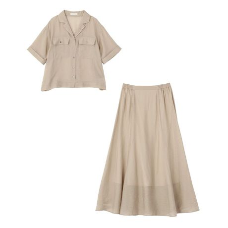 シャツとスカートがセットになったアイテムで、コーディネートに悩まず着るだけでバランスの整った着こなしが完成します。ほどよくゆとりのあるシルエットが体のラインを拾いにくく、リラックス感ときちんと感を両立できるのが魅力です。軽やかな素材感で動くたびに美しい揺れ感が生まれ、女性らしい印象を引き立てます。上下それぞれ単品でも使えるため、手持ちのアイテムと合わせて幅広いスタイリングが楽しめます。デイリーからお出かけまで活躍し、着回し力の高さも嬉しいポイントです。忙しい毎日にも頼れる一着です。