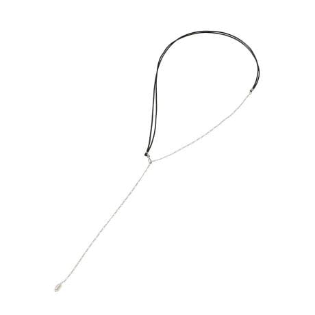 コードとチェーンを組み合わせた異素材デザインが魅力のラリエットです。やわらかなコードの質感とメタルチェーンの上品な輝きが絶妙に調和し、シンプルながらも印象的なアクセントをプラスしてくれます。縦に流れるラインが首元をすっきりと見せ、スタイルアップ効果も期待できるのが嬉しいポイントです。結び方やバランスを変えることでアレンジも楽しめるため、その日のコーディネートに合わせた表情を演出できます。カジュアルな装いには程よい上品さを、きれいめスタイルには抜け感を添え、幅広いシーンで活躍します。日常使いにも取り入れやすく、ひとつあると着こなしの幅が広がります。