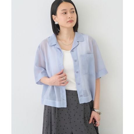透け感のあるシアー素材が軽やかな印象を与える、ショート丈の開襟シャツです。涼しげな見た目で季節感を演出しながら、さらっと羽織るだけでこなれたスタイリングが完成します。短めの丈感はバランスが取りやすく、ハイウエストのボトムやワンピースとも相性抜群です。ゆとりのあるシルエットで体のラインを拾いにくく、リラックスした着心地も魅力です。前を閉じてトップスとしても、羽織りとしても使えるため、着回し力の高い一枚です。カジュアルからきれいめまで幅広いコーデに活躍します。