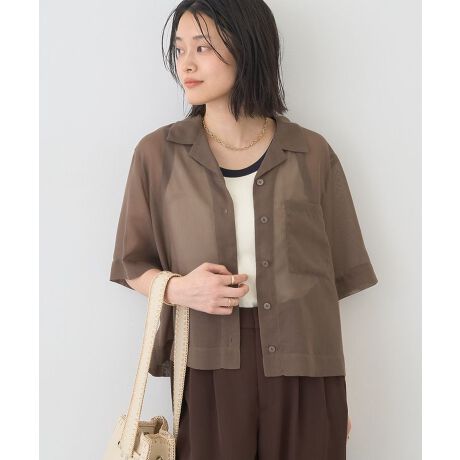 透け感のあるシアー素材が軽やかな印象を与える、ショート丈の開襟シャツです。涼しげな見た目で季節感を演出しながら、さらっと羽織るだけでこなれたスタイリングが完成します。短めの丈感はバランスが取りやすく、ハイウエストのボトムやワンピースとも相性抜群です。ゆとりのあるシルエットで体のラインを拾いにくく、リラックスした着心地も魅力です。前を閉じてトップスとしても、羽織りとしても使えるため、着回し力の高い一枚です。カジュアルからきれいめまで幅広いコーデに活躍します。