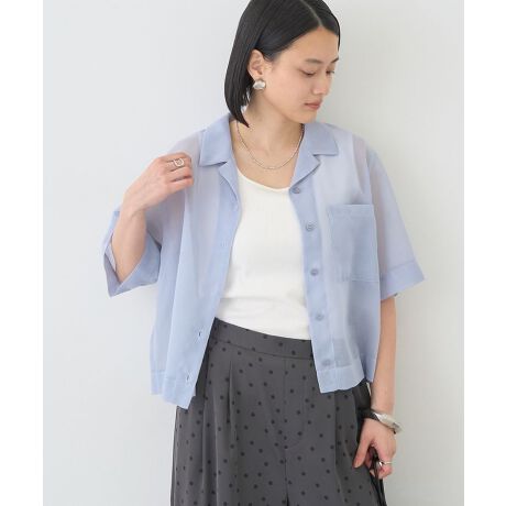 透け感のあるシアー素材が軽やかな印象を与える、ショート丈の開襟シャツです。涼しげな見た目で季節感を演出しながら、さらっと羽織るだけでこなれたスタイリングが完成します。短めの丈感はバランスが取りやすく、ハイウエストのボトムやワンピースとも相性抜群です。ゆとりのあるシルエットで体のラインを拾いにくく、リラックスした着心地も魅力です。前を閉じてトップスとしても、羽織りとしても使えるため、着回し力の高い一枚です。カジュアルからきれいめまで幅広いコーデに活躍します。