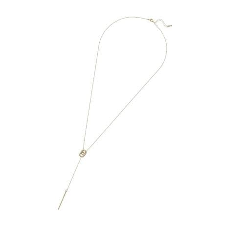 ダブルリングのモチーフからすっと伸びる縦ラインが、首元から胸元まで美しく引き立てるロングネックレスです。動くたびにさりげなく揺れるデザインが、上品な抜け感と女性らしさを演出します。シンプルながらも印象的なフォルムで、コーディネートに程よいアクセントをプラスできるのが魅力です。ロングタイプなので縦のラインを強調し、すっきりとしたスタイルアップ効果も期待できます。普段使いはもちろん、きれいめスタイルにもなじみやすく、幅広いシーンで活躍するアイテムです。