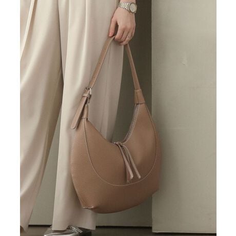 やわらかな曲線が美しいハーフムーンシルエットが印象的なショルダーバッグです。ワンハンドルデザインが洗練された雰囲気を演出し、持つだけでコーディネートを上品にまとめてくれます。コンパクトながら必要な荷物をしっかり収納できるサイズ感で、日常使いにもぴったりです。肩にかけたときのフィット感も良く、軽やかな持ち心地で快適にお使いいただけます。カジュアルからきれいめまで幅広いスタイルに馴染み、シーンを選ばず活躍する万能なアイテムです。