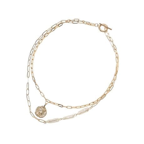 パールのやわらかな光沢とコインモチーフの上品な輝きを組み合わせたネックレスです。表情を楽しめるミックスデザインが、首元に自然な立体感とこなれた印象を与えてくれます。パールが女性らしいやさしさを演出しながら、コインのアクセントが程よい存在感をプラスし、シンプルなコーディネートもぐっと洗練された印象に仕上がります。カジュアルからきれいめまで幅広いスタイルに合わせやすく、日常使いにも取り入れやすいのが魅力です。軽やかな着け心地で長時間でも快適に過ごせるため、毎日のコーディネートに活躍します。