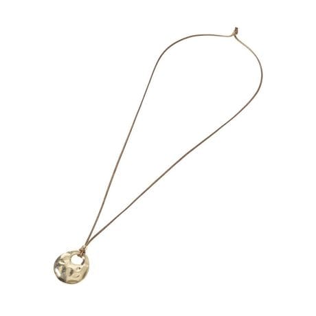 異素材バランス×メタルモチーフがワンポイントにメタルモチーフの上品な輝きとコードのやわらかな質感を組み合わせたネックレスです。異素材のコントラストがほどよいアクセントとなり、シンプルなコーディネートにも自然な立体感をプラスしてくれます。軽やかなコードが首元にやさしく馴染み、メタルの光沢がさりげない華やかさを演出します。主張しすぎないデザインなので、カジュアルからきれいめまで幅広いスタイルに合わせやすく、日常使いにもぴったりです。軽量で負担が少なく、長時間でも快適に着用できます。ひとつ取り入れるだけで、上品カジュアルな雰囲気を引き立ててくれる万能なアクセサリーです。※モデル着用画像は、光の当たり具合で色味が違って見える場合がございます。※お使いのモニター環境によって商品の色味が違って見える場合がございます。