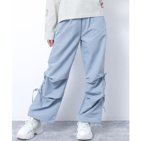 【item info】トレンド感のあるディテールを詰め込んだ、サイドリボンデザインのナイロンパンツ。膝部分にタックを入れることで立体感をプラスし、動きのあるシルエットに仕上げました。サイドにあしらったリボンがさりげないアクセントになり、スポーティーな中にも可愛らしさを演出。裾の内側にはドローストリングを施しており、絞り具合を調整することでシルエットの変化を楽しめます。程良いワイドシルエットで体のラインを拾いにくく、デイリー使いにもぴったり◎Tシャツでカジュアルに、コンパクトなトップスと合わせたバランスコーデもおすすめです。