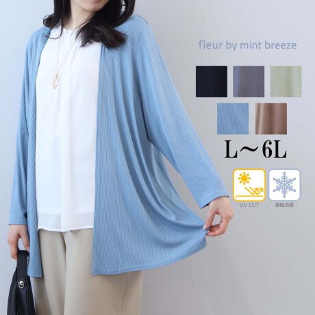 【大きいサイズ】【UVカット/接触冷感】テレコトッパーロングカーディガン