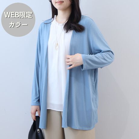 【大きいサイズ】【UVカット/接触冷感】テレコトッパーロングカーディガン
