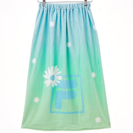 [型番:126406]おしゃれキッズにぴったり!FILAのボックスロゴが映えるグラデーションカラーに、かわいい花柄とドット柄を散りばめたデザインが魅力の巻きタオルです。