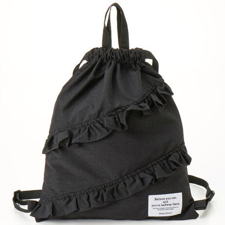 [型番:126543]存在感抜群のフリルデザインナップサック。フリルがふんわりと揺れて、後ろ姿も華やかに演出します。カジュアルにもフェミニンにもマッチします。旅行やお出かけコーデにもぴったりです。