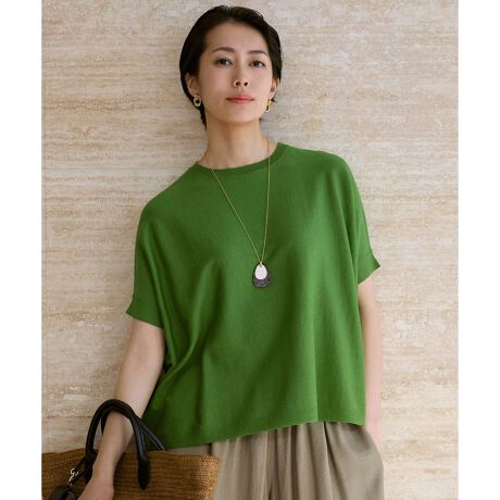 ゆったりとしたスクエアシルエットのシャリ感のあるプルオーバーニット■デザインポンチョのようなスクエアシルエットが特徴のプルオーバーニットです。たっぷりとゆとりを持たせたシルエットでリラックス感がありながら、袖口をややコンパクトに引き締めることで、ルーズに見えないすっきりとした印象に仕上げました。シンプルながらも計算されたデザインで、着るだけで洗練されたスタイルが完成します。■素材綿100%の糸にギマ加工を施すことで、まるで麻のような風合いを再現しました。独特のシャリ感とハリのある編地が特徴で、さらっとしたドライな肌触りが魅力です。暑い時期でも快適に着ていただけます。■同素材アイテムカーディガン(KRWRLM0551)