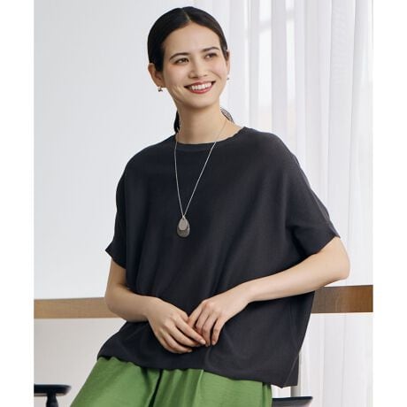 ゆったりとしたスクエアシルエットのシャリ感のあるプルオーバーニット■デザインポンチョのようなスクエアシルエットが特徴のプルオーバーニットです。たっぷりとゆとりを持たせたシルエットでリラックス感がありながら、袖口をややコンパクトに引き締めることで、ルーズに見えないすっきりとした印象に仕上げました。シンプルながらも計算されたデザインで、着るだけで洗練されたスタイルが完成します。■素材綿100%の糸にギマ加工を施すことで、まるで麻のような風合いを再現しました。独特のシャリ感とハリのある編地が特徴で、さらっとしたドライな肌触りが魅力です。暑い時期でも快適に着ていただけます。■同素材アイテムカーディガン(KRWRLM0551)