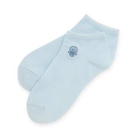 海の生き物たちがワンポイントで刺しゅうされているソックスです。カラーによってデザインが異なるため、その日の気分やコーデによって使い分けられます。短めのスニーカー丈になっており、足元がすっきりと見えるのも魅力です。