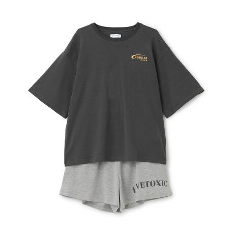 【ルームウェア/パジャマ】半袖ロゴバックプリントTシャツ&ショートパンツセット