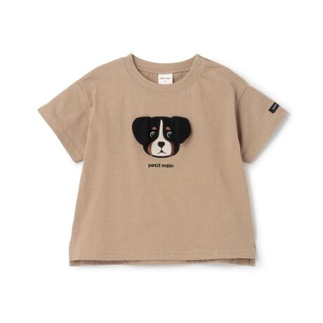胸元にあしらった犬のアップリケが目を引くTシャツです。立体的に表現されているお耳がかわいいポイント。どんなボトムスにも合わせやすいベーシックなシルエットです。ひんやりと感じる接触冷感仕様なので、暑い時期のコーディネートに重宝します。内側にお名前を記入できるタグつき。※80、90サイズのみ肩開き