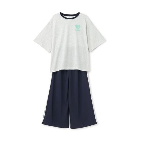 【ルームウェア/パジャマ】半袖ハートバックプリントTシャツ&ラインロングパンツセット