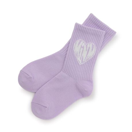 ハート型のロゴデザインが目を引くクルーソックスです。豊富な5色展開になっており、デイリーに使い分けられます。足首に当たる部分はフィット感の良いリブ編み仕様。プリーツスカートやスニーカーなどを合わせると、女の子らしいカジュアルコーデが完成します。