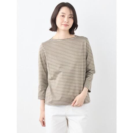 [型番:6251728]エレメント定番素材のシルケット加工を施した綿100%のボーダーTシャツです。程良くゆとりのあるストレートシルエットに広すぎない絶妙なボートネック開きが顔周りをすっきりと見せてくれます。7分袖丈のセットインできちんと感もあり、パンツにもスカートにも相性が良くデイリーに活躍してくれる万能ベーシックアイテムです。