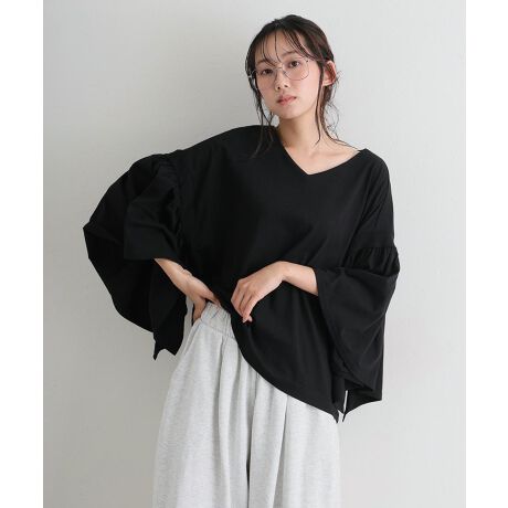 ドロップショルダーギャザースリーブカットソー
